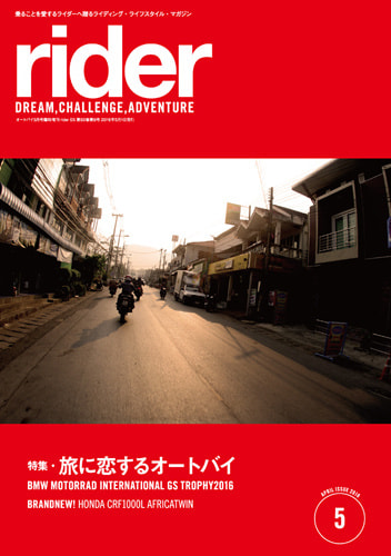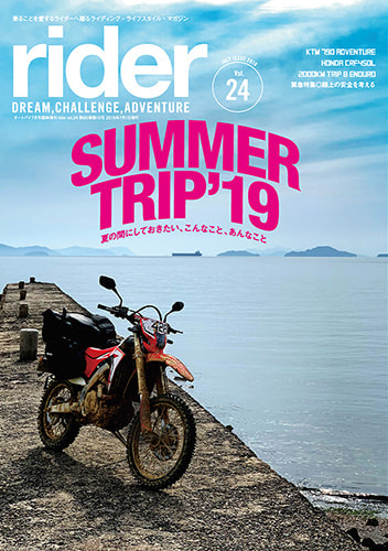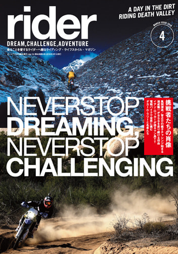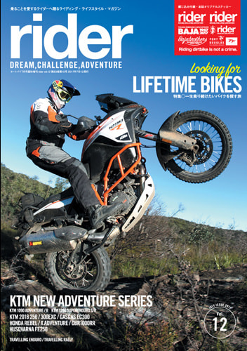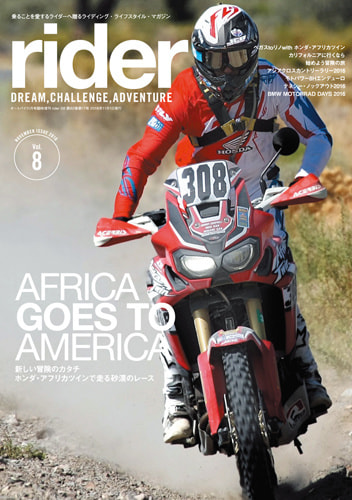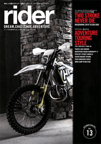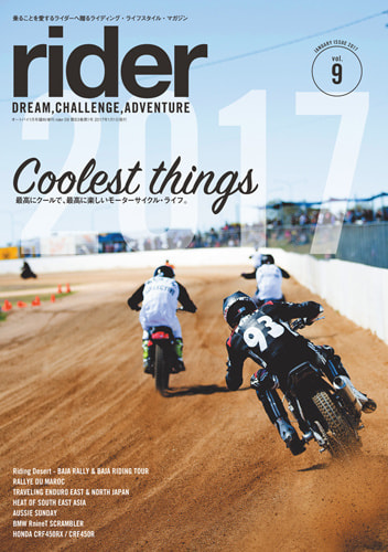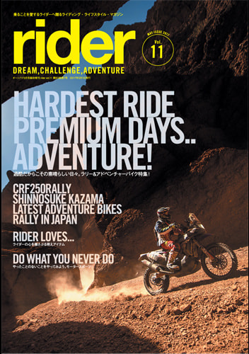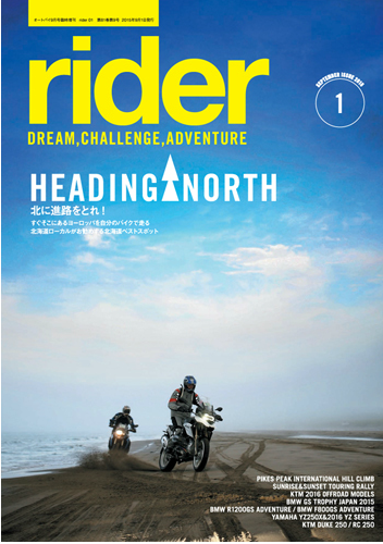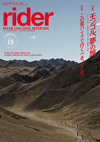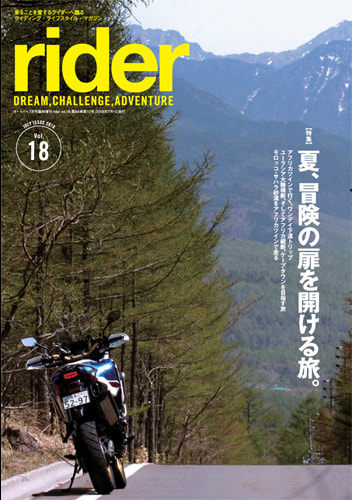 「rider」は夢、冒険、挑戦をテーマにしたライディング・ライフスタイル マガジンです。たった2つの車輪で、世界のあらゆるところへと連れて行ってくれる素晴らしい乗り物=モーターサイクルの普遍的な楽しみ方とアイデア、そして乗りたくなるモチベーションを提供します。